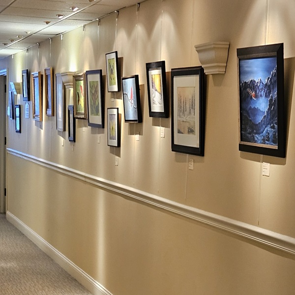 Phyllis works with acrylics and watercolors and her pieces focus on beautiful, natural landscapes. The collection includes 36 pieces, with several already purchased by The Moorings’ staff and residents. All pieces are framed and range from $50-$200.